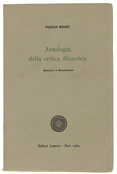 ANTOLOGIA DELLA CRITICA FILOSOFICA. Volume II: Medioevo e Rinascimento.