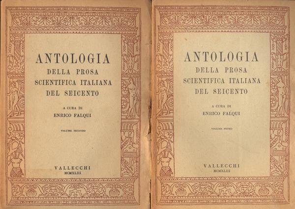 VALLECCHI, 1948 16mo, brossura.: vol.I, pp.lxxxiv-412; vol.II, pp.413-839, più 46 tavole f.t. riproducenti altrettanti frontespizi di opere scientifiche dell'epoca in b.n. BUONO stato, con segni del tempo alle estremità delle pagine, invece dorso, riproduzioni, attaccatura e interno in buonissime condizioni