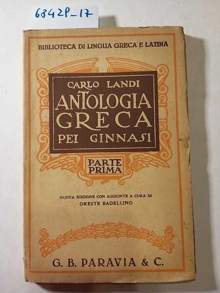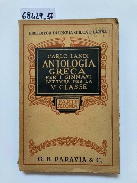 (Collana : Biblioteca di lingua greca e latina) Antologia greca - DETTAGLIO DELLE CONDIZIONI : Coperta e pagine usurate ingiallite con tracce di umidità e fioriture - (1.II.7).