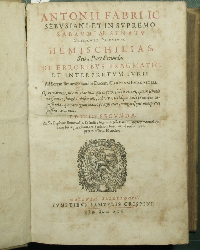 Antonii Fabri IC. Sebusiani, et in supremo Sabaudiae Senatu primarii praesidis, Hemischilias seu, pars secunda, De erroribus pragmatic. et interpretum iuris