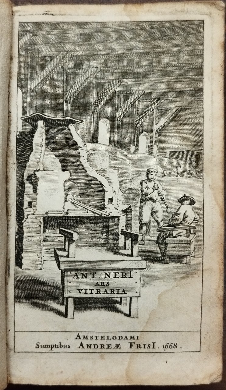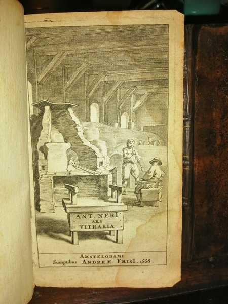 In-12 (13 cm) (1) c. (antiporta incisa) (26) 455 (17) (6) c. (di tav. ripieg.). Al frontespizio vignetta calcografata:Uomo piegato con libri: optimi consultores mortui. Piena pergamena con titolo manoscritto al dorso. Tit. dell'antip.: "Ant. NerI Ars vitraria. Le note di Christopher Merret iniziano con proprio occhietto: "Christophori Merret Med. D. & Societatis Regiae membri. In libros de arte vitraria notae"Neri Antonio (1576-1614). Monaco, cultore di alchimia, autore del principale trattato sul vetro del Seicento. Nato a Firenze e morto a Pisa. Rif.: NUC pre-1956, v. 410, p. 383. (EN) In-12 (13 cm) (1) c. (engraved frontispiece) (26) 455 (17) (6) c. (of folding table). On the title page, engraved vignette: Man bent over with books: optimi consultores mortui. Full parchment with handwritten title on the spine. Title of the foreword: "Ant. NerI Ars vitraria. Christopher Merret's notes begin with his own little eye: "Christophori Merret Med. D. & Societatis Regiae members. In libros de arte vitraria notae"Neri Antonio (1576-1614). Monk, expert in alchemy, author of the main treatise on glass of the seventeenth century. Born in Florence and died in Pisa. Ref.: NUC pre-1956, v. 410, p. 383.