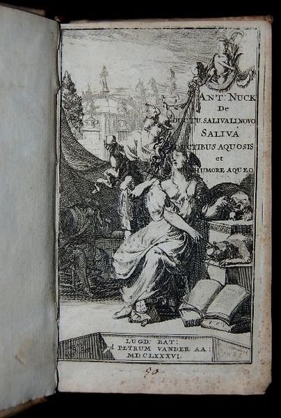 In 12° (13×7,5 cm); (10), 175, (17) pp., unantiporta figurata e 3 c. di tav. fuori testo più volte ripiegate. Bella legatura coeva in tutta pergamena molle. Dorso a 4 nervi con titolo manoscritto da mano coeva. Pagine leggermente ed uniformemente brunite ma esempalre in buone-ottime condizioni di conservazione. Prima rara edizione, due sole copie censite in ICCU e con numero minore di pagine e tavole, di questo importante studio pionieristico sulla saliva ed i dotti salivali. Antonius Nuck van Leiden (Harderwijk, 1650 Leida, 5 agosto 1692) è stato uno dei medici e anatomisti più celebri del suo tempo. Dopo aver studiato a Leida, dove ricevette il dottorato nel febbraio del 1677, con una tesi sul diabete praticò larte medica a Delft. Nel 1683 si spostò a LAia per insegnare anatomia al Collegium anatomicum chirurgicum. Tornò poi a Leida dove ottenne una cattedra di medicina e anatomia. Famoso anche come oculista, otorino, dentista viene ricordato principalmente per i suoi studi sui vasi linfatici e le ghiandole salivari, di cui è considerato uno dei pioniere: inventò infatti la prima scialografia, sia introducendo un mezzo di contrasto nei dotti salivari, sia nei vasi sanguigni, come aveva già tentato Frederik Ruysch (1638-1731). Il suo nome attualmente è legato al dotto di Nuck e alle sue patologie. Esemplare in buone-ottime condizioni di conservazione. RARO. RARE. Good copy. Bibl.: Krivatsy, 8359 e Wellcome IV p. 250.
