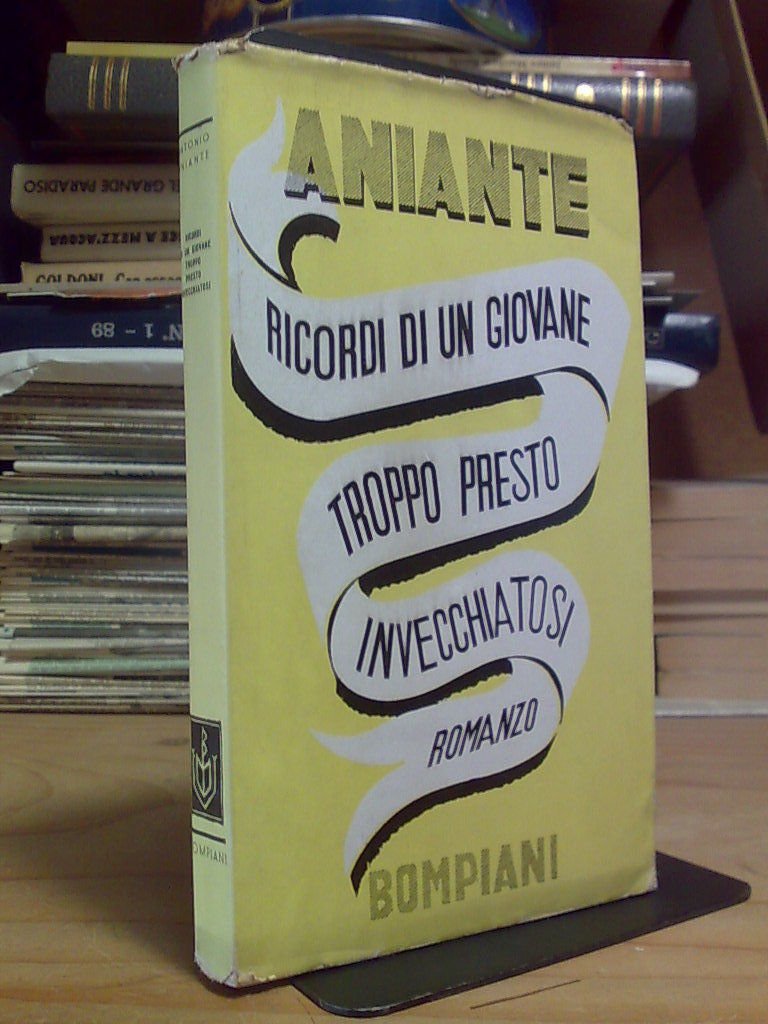 Aniante - RICORDI DI UN GIOVANE TROPPO PRESTO INVECCHIATOSI - 1939lingua : italianoeditore : Bompianiedizione : 1939rilegatura : brossura con sovracoperta cm. 20,5 x 12pag. 255La