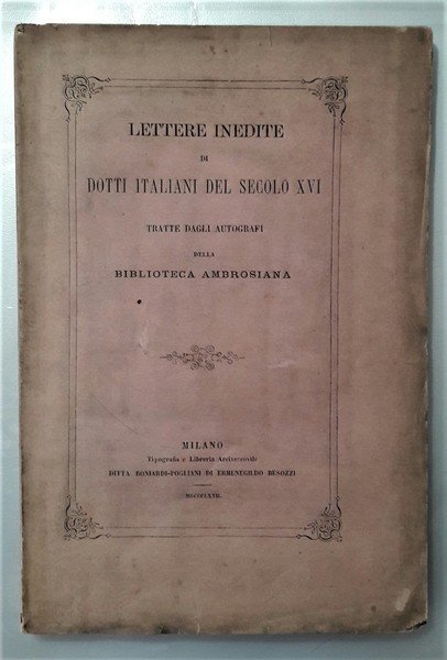 *ANTONIO CERUTI. Lettere inedite di dotti italiani del Secolo XVI tratte dagli autografi della Biblioteca Ambrosiana.