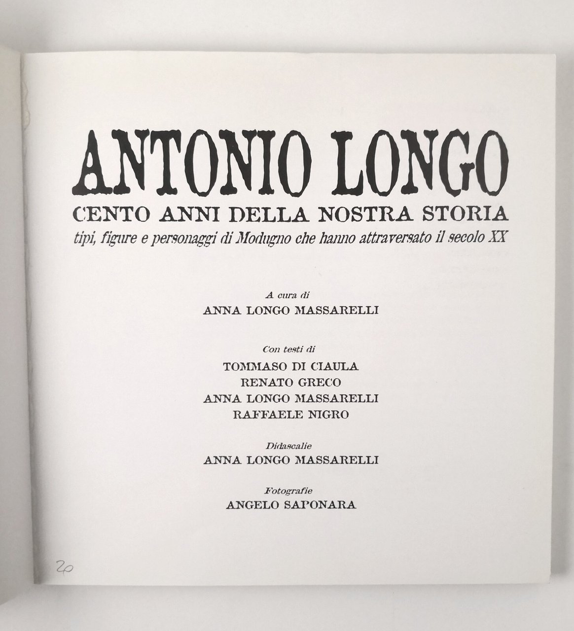 ANTONIO LONGO. CENTO ANNI DELLA NOSTRA STORIA a cura di Anna Longo Massarelli. Tipi, figure e personaggi di Modugno che hanno attraversato il secolo XX.