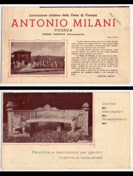 Antonio Milani. Lavorazione artistica della Pietra di Vicenza. 1939