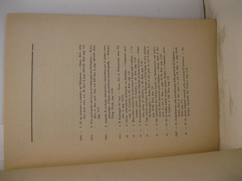 In 8, pp. 7 + (1b). Br. muta coeva. Bibliografia degli scritti di Antonio Neviani fra il 1883 e il 1899. Antonio Neviani (1857-1946), studioso di zoologia, mineralogia e botanica.