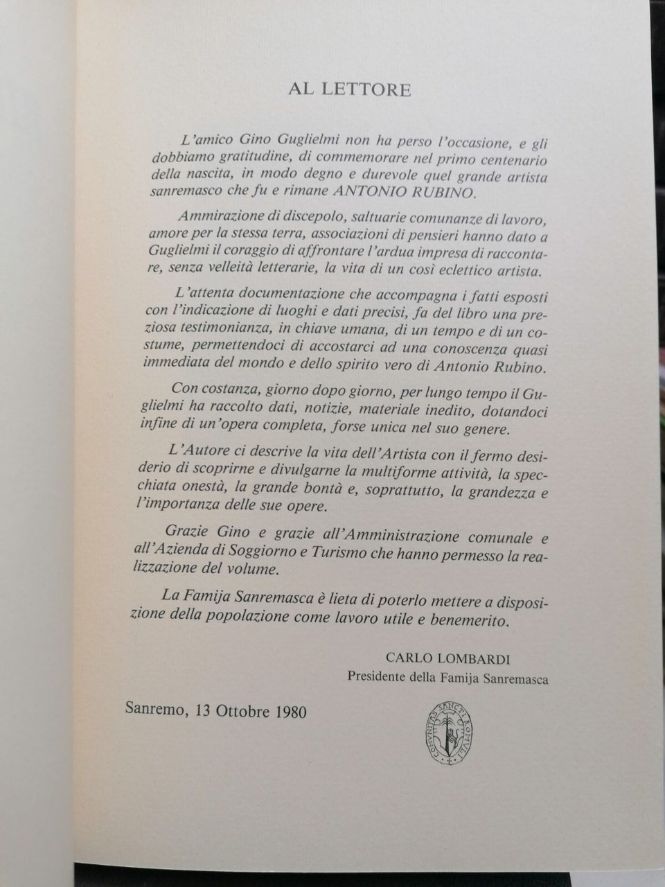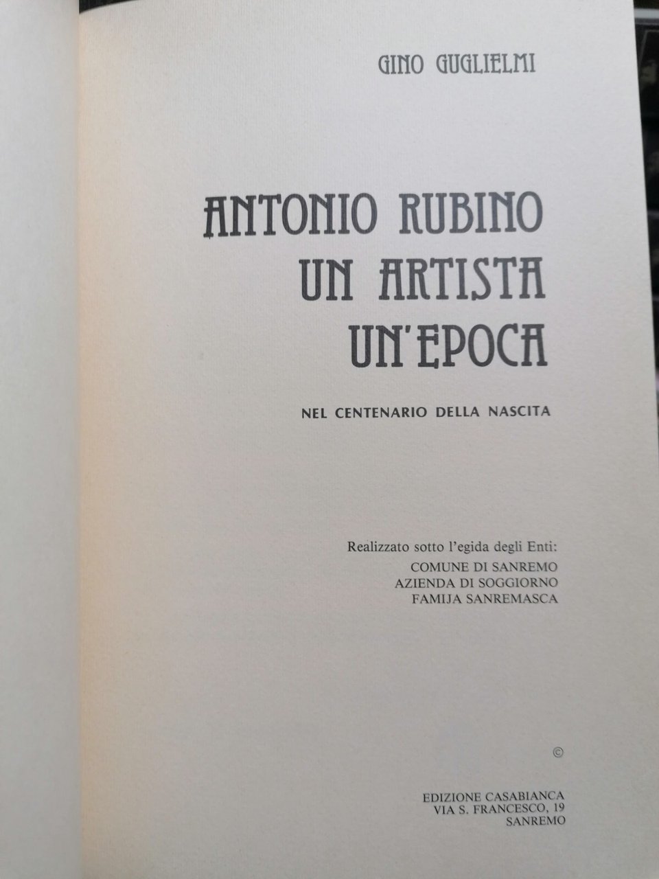 Nel centenario della nascita. Pubblicato sotto l'egida del Comune di Sanremo, dell'azienda di soggiorno e della Famija Sanremasca Brossura, in 8^, pp. 74, con numerose illustrazioni. Il ritratto di un artista eclettico e geniale, della sua attività e della sua epoca. Condizioni: discrete, qualche abrasione/segno del tempo in copertina. Internamente in buon stato.