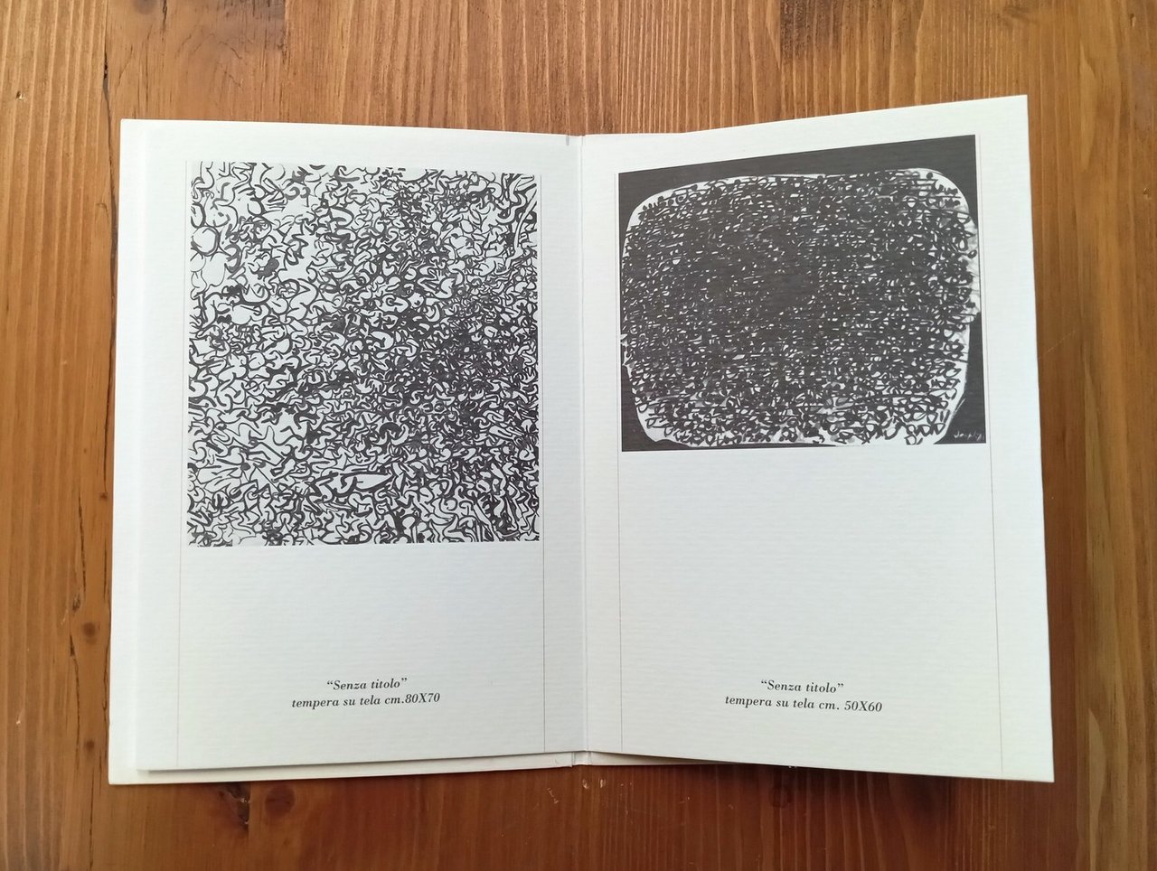 Senza data di stampa, ma edito in occasione della mostra di Roma, Galleria-Stamperia d'Arte Il Bulino, dal 5 novembre 1997 - Brochure a fisarmonica (12,5 x 18 cm) con testo di Daniela Fonti alle bandelle, 4 riproduzioni in bianco e nero. Lievi segni del tempo esterni, peraltro in perfetto stato; pubblicazione non comune.