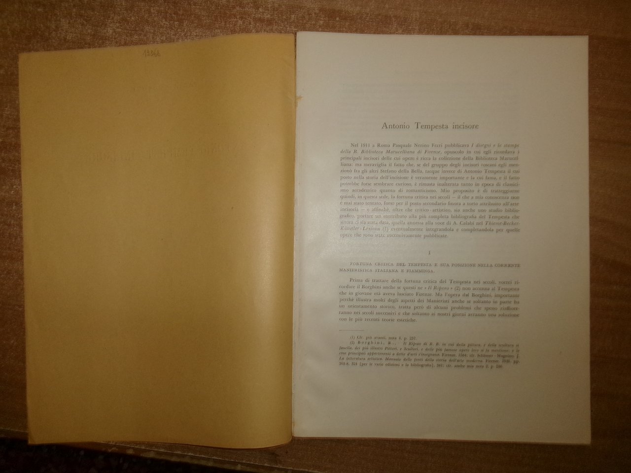 Fabia Borroni. Leo S. Olschki Editore, 1950. ANTONIO TEMPESTA INCISORE. In-8° grande, br. da pag. 241 a pag. 263. Estratto da La Bibliofilia diretta da Roberto Ridolfi Anno LII (1950) . Dispensa 3. Opuscolo ben conservato. Neg. mob. E entro busta trasp.