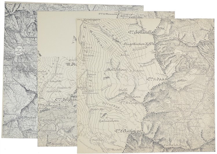 (Codice LO/6949) Serie di 4 carte, riproduzione ingrandita di rilevazioni dell'Istituto Geografico Militare, 38,5x37 cm. circa caduna. Titolo al verso. Ottimo stato. ~~~ SPEDIZIONE IN ITALIA SEMPRE TRACCIATA