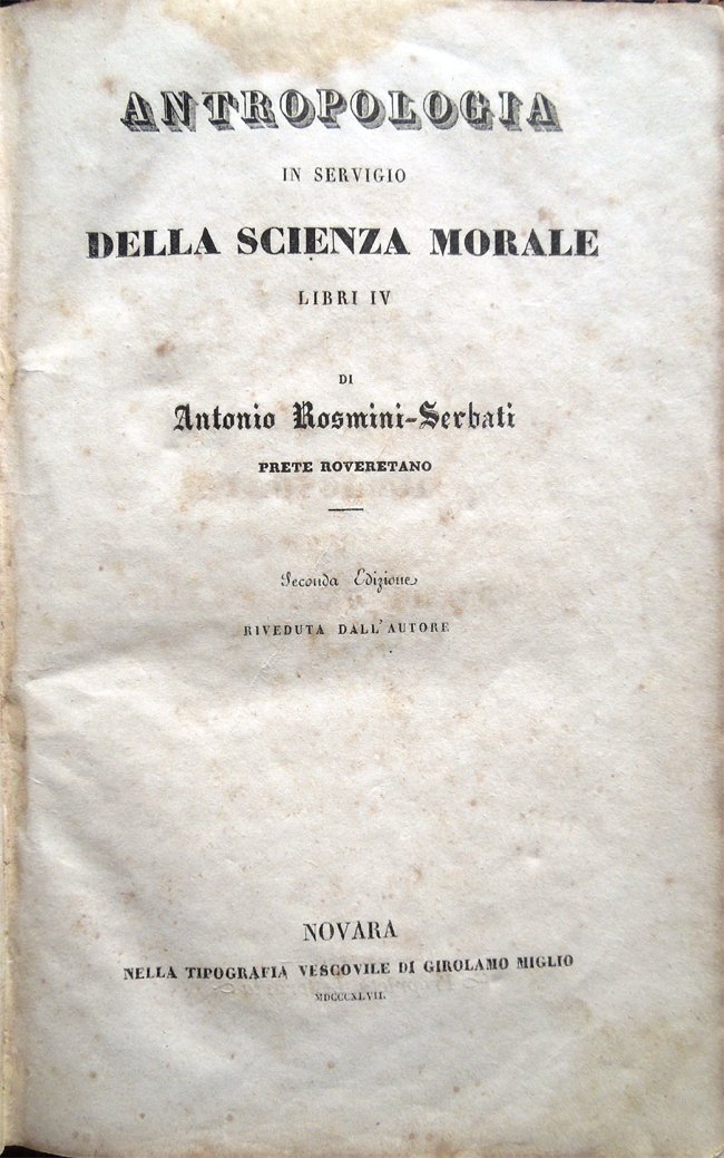 Antropologia in servigio della scienza morale libri IV, di Antonio Rosmini-Serbati prete roveretano. Seconda edizione riveduta dall'autore