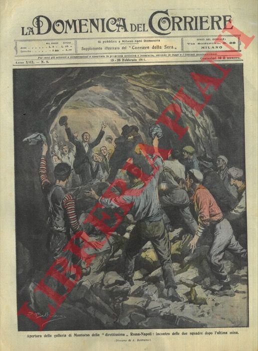 Milano, 19/02/1911, la sola copertina illustrata a colori, senza il fascicolo, della Domenica del Corriere.