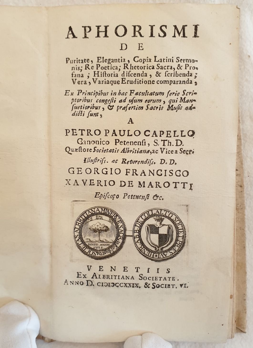 APHORISMI DE PURITATE, ELEGANTIA, COPIA LATINI SERMONIS, RE POETICA, RHETORICA SACRA & PROFANA HISTORIA DISCENDA & SCRIBENDA, VERA, VARIAQUE ERUDITIONE COMAPRANDA