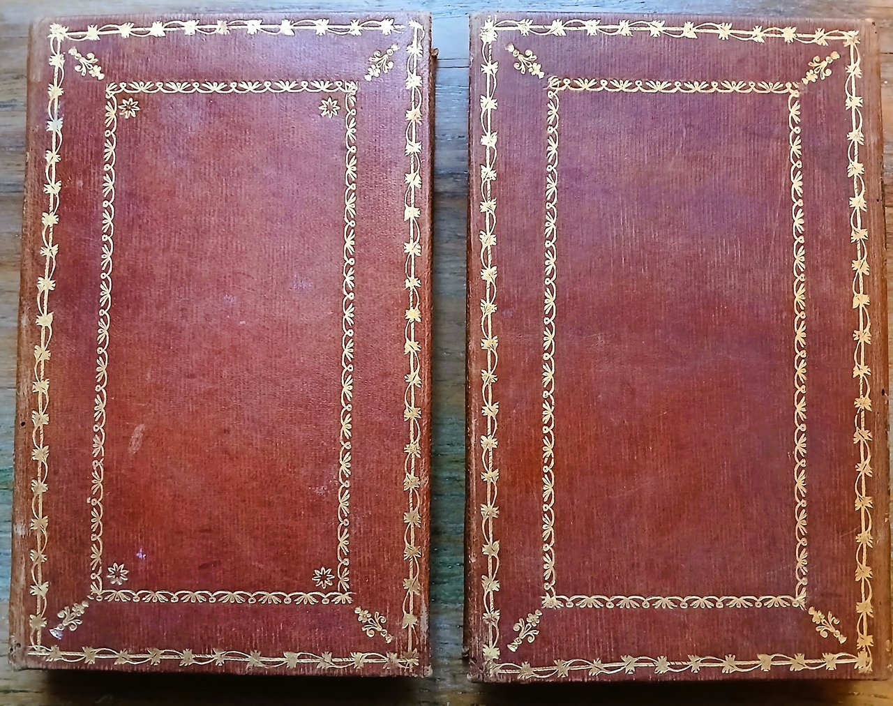 Due volumi in 16°, legatura coeva in piena pelle con titoli e ricche impressioni in oro, guardie in carta marmorizzata, pp. (6),XXIV,186, con una tavola incisa in antiporta ; 162,(2). Ottimo stato di conservazione.