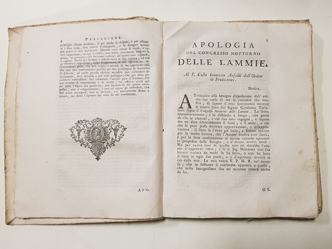 Apologia del congresso notturno delle lammie, o sia risposta di Girolamo Tartarotti all'Arte magica dileguata del sig. march. Scipione Maffei, ed all'opposizione del sig. assessore Bartolommeo Melchiori.
