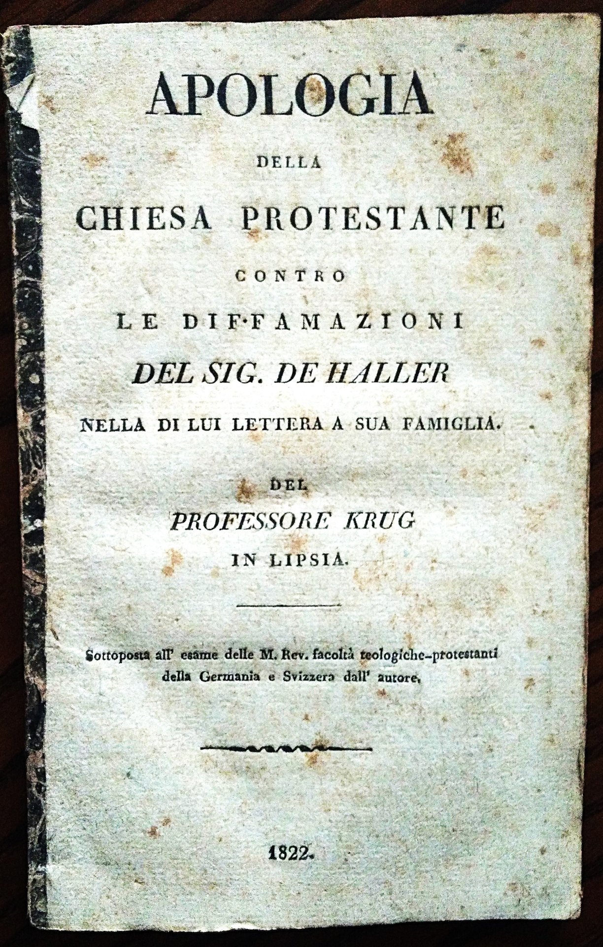 Apologia della Chiesa protestante contro le diffamazioni del sig. De Haller nella di lui lettera a sua famiglia.