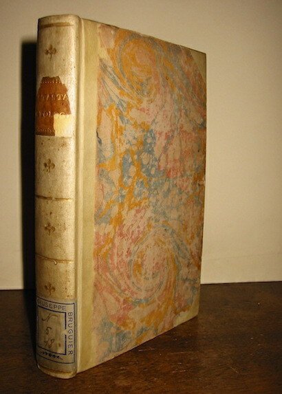 8vo (cm. 20). VI-300 pp. Legatura inizi ‘800 in mz. pergamena con angoli. Fili, fregi e titolo oro su tassello in pelle (piccole mancanze) al ds. Tagli colorati. Etichetta cartacea di bibl. privata al piede del ds. Firmetta di appartenenza al frontespizio. Sporadiche fioriture ma ottimo esemplare. Nome dell’A. a p. III. Opera non comune.
