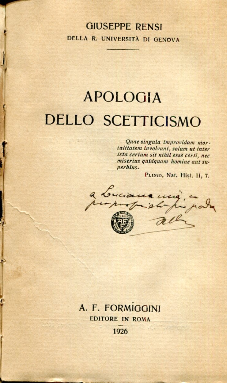 In 16, pp. 131. Legatura mezza tela con titoli in rosso. Cerniere con bruniture. Timbro di possesso e dedica anonima Buono (Good) .
