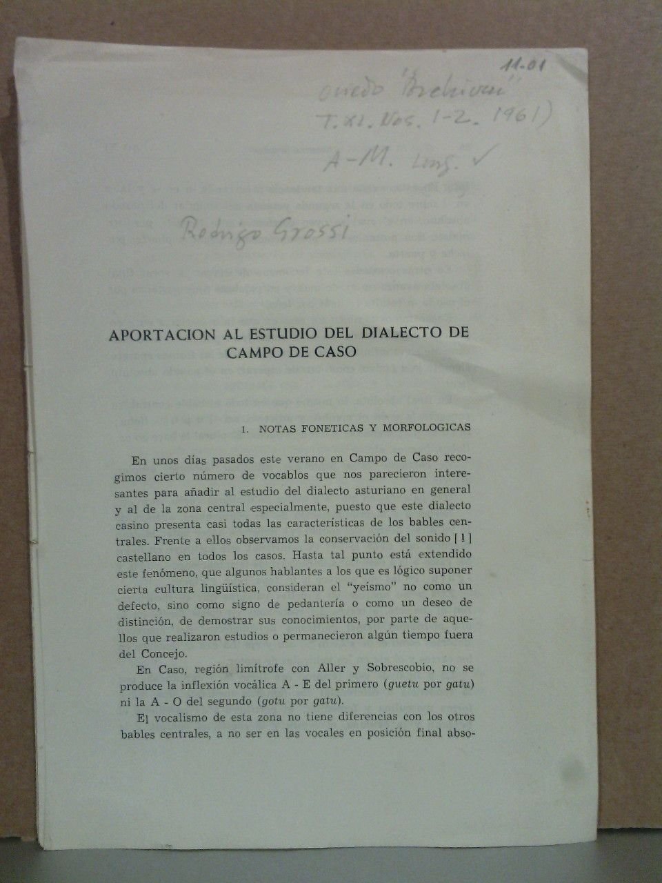 [Oviedo]: [Eds. de la Universidad], [1961].- P. 79-102 (en total 24 pags.); 4º (24 x 17,1 cm.); Cubiertas provisionales.- Desglosado de la Revista "Archivum" Facultad de Filología de la Univ. de Oviedo. Tomo XI. Nos. 1-2, año 1961.* Al tratarse de un desglose carece de cubiertas y se le han puesto unas provisionales en papel. OTRAS LENGUAS DE ESPAÑA