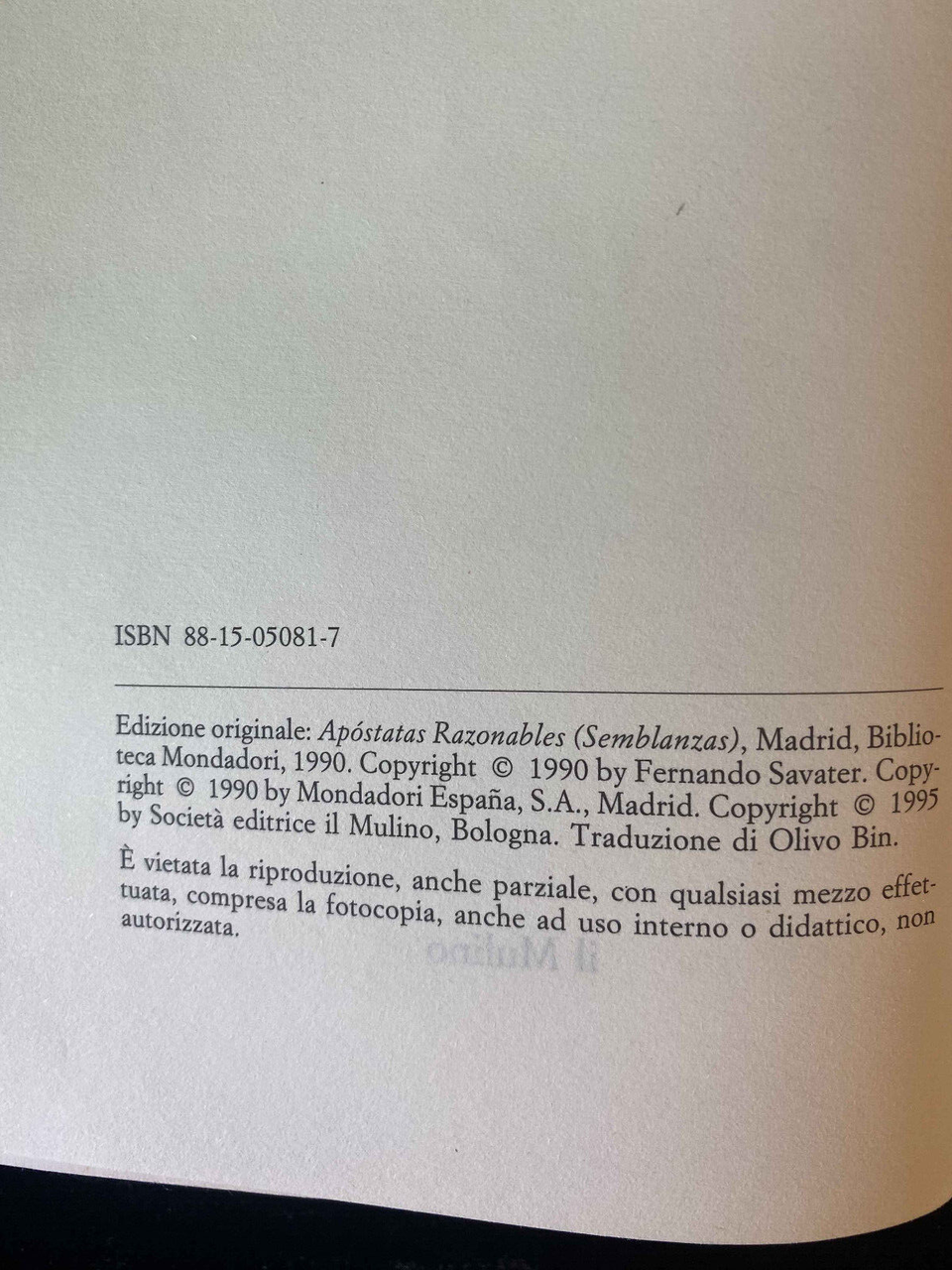 Apostati ragionevoli, Fernando Savater, il Mulino, 1995