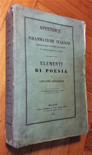 *Appendice alle Grammatiche Italiana. Dedicata agli studiosi giovinetti. Seconda edizione. Elementi di Poesia. Compilati da Giovanni Gherardini. Terza edizione. Due libri in uno.