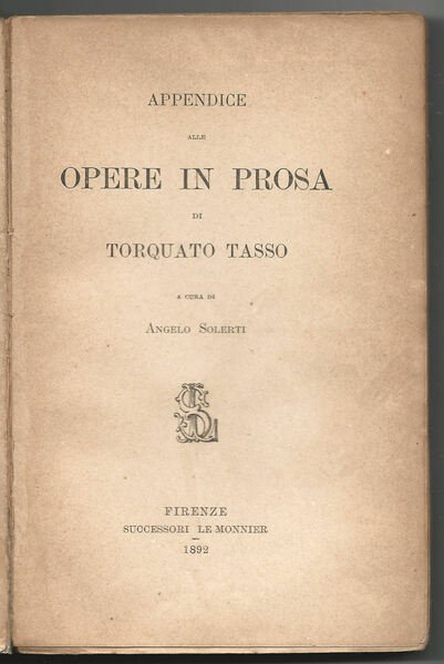 Appendice alle opere in prosa di Torquato Tasso.