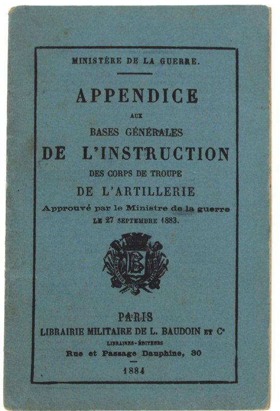 APPENDICE AUX BASES GENERALES DE L'INSTRUCTION DES CORPS DE TROUPE DE L'ARTILLERIE. Approuvé par le Ministère de la guerre Le 27 septembre 1883.