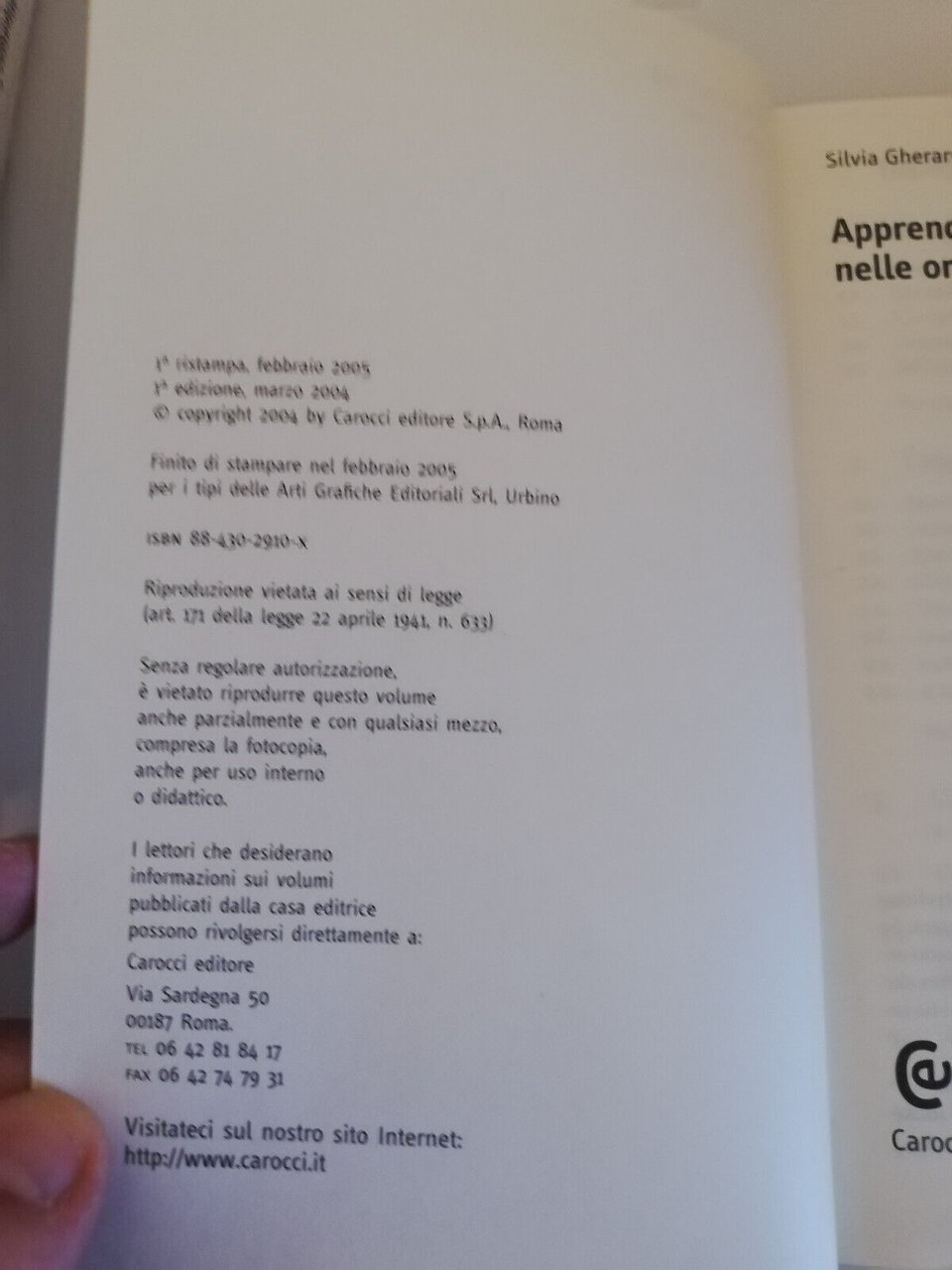Apprendimento e conoscenza nelle organizzazioni, S. Gherardi, D. Nicolini, 2005