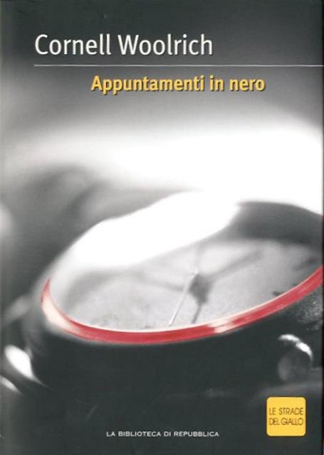 234 p. ; 21 x 15 cm. Le strade del giallo, 26. Ricco di humour e dotato di una scrittura poderosa e poetica, "Appuntamenti in nero" è uno dei capolavori di Woolrich, definito "il poeta delle ombre", fondatore del moderno giallo di suspense. Nella sua opera la brutalità diretta, tipica del poliziesco americano dell'epoca, viene sostituita da una latente violenza interiore. Un mondo crepuscolare, al confine dell'incubo, ma saldamente sostenuto da dettagli realistici, s'impadronisce delle vittime e dei lettori, mescolando amore e morte, giallo e noir. Ed. speciale per "La Repubblica". Traduzione di Giuseppe Lippi. Brossura editoriale, coperta illustrata a colori in cartoncino flessibile, con alette. Codice libreria 4566.