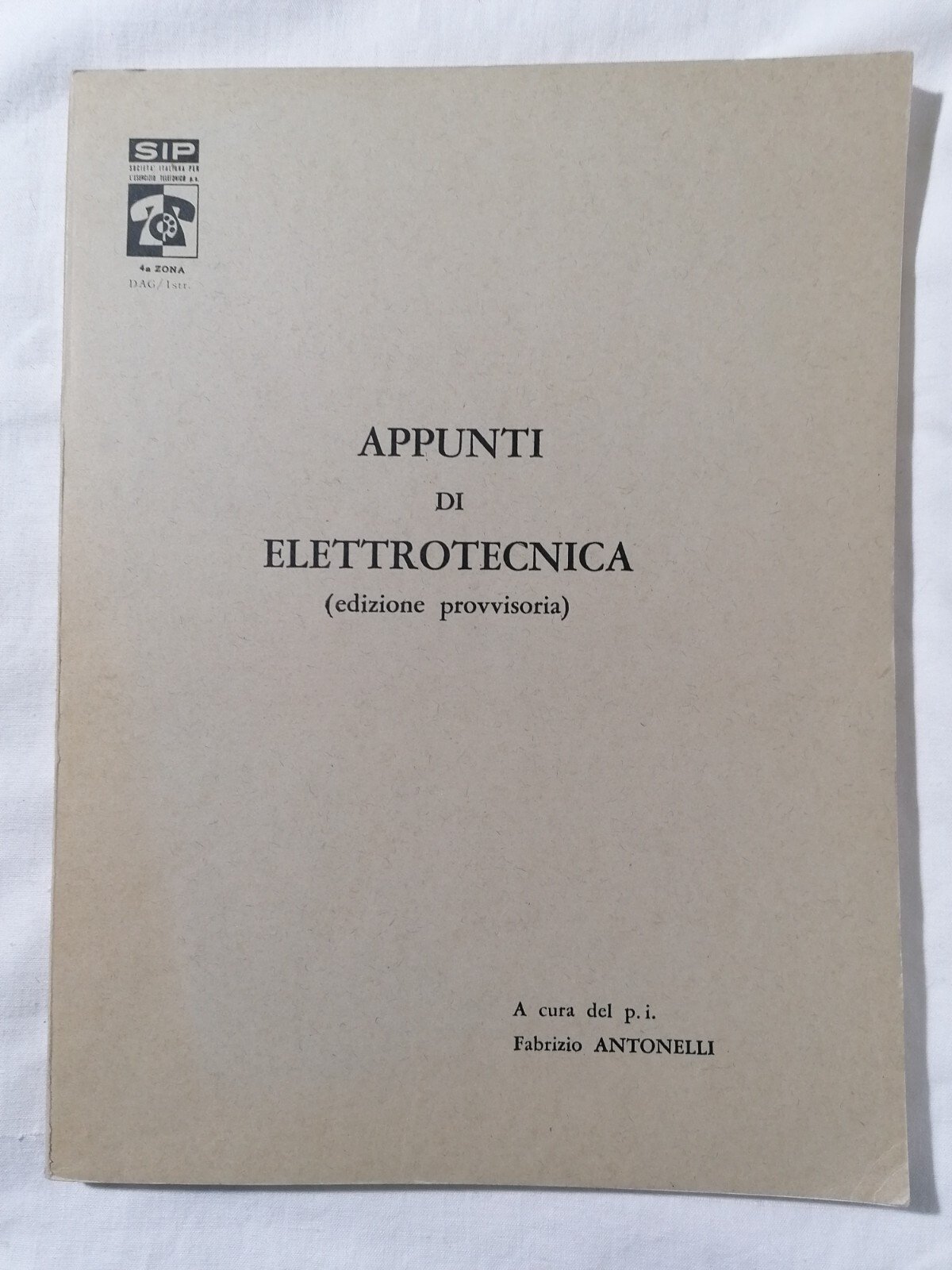 APPUNTI DI ELETTROTECNICA. Edizione provvisoria a cura del p.i. Fabrizio Antonelli SIP Brossura in discrete condizioni (unico difetto: alcune pagine in fondo sono scollate. Invio ulteriori foto su richiesta) 1F-13-11 / 1F-13-12