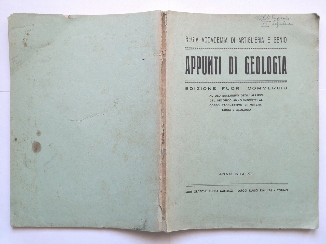APPUNTI DI GEOLOGIA 1942 regia accademia di artiglieria e genio Libro allievi