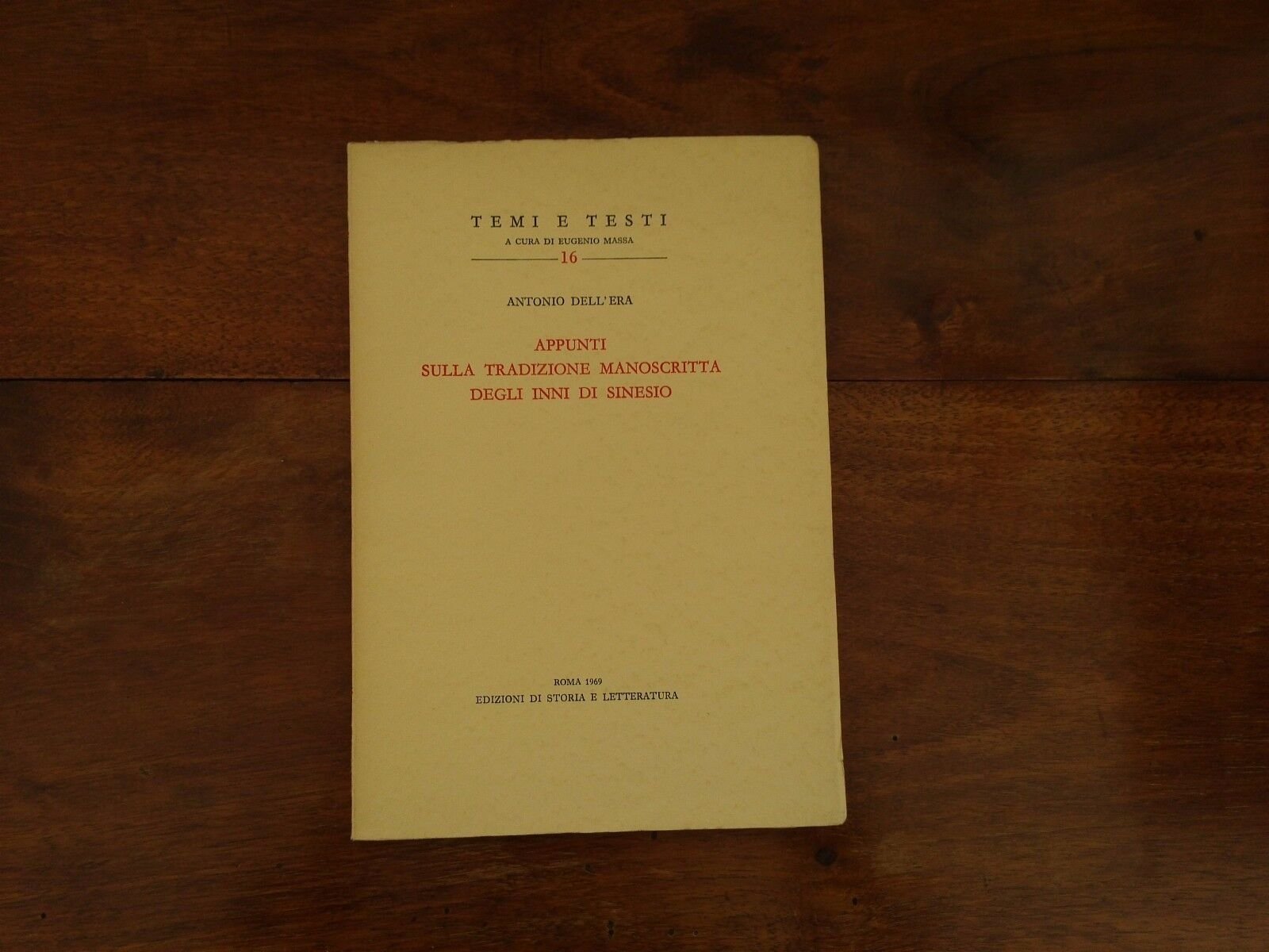 Dell'Era - Appunti sulla tradizione manoscritta degli Inni di Sinesio Edizioni di storia e letteratura - Prima edizione 1969 Libro in ottime condizioni, minimi segni del tempo. Non esitate a contattarci per altre foto o richieste. Saremo lieti di soddisfare ogni vostra esigenza.