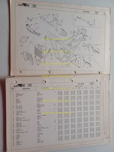 Aprilia 50 AF1 1990 catalogo ricambi TELAIO originale FRAME parts catalog