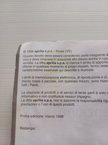 Aprilia Leonardo 125 - 150 1998 manuale uso manutenzione libretto originale