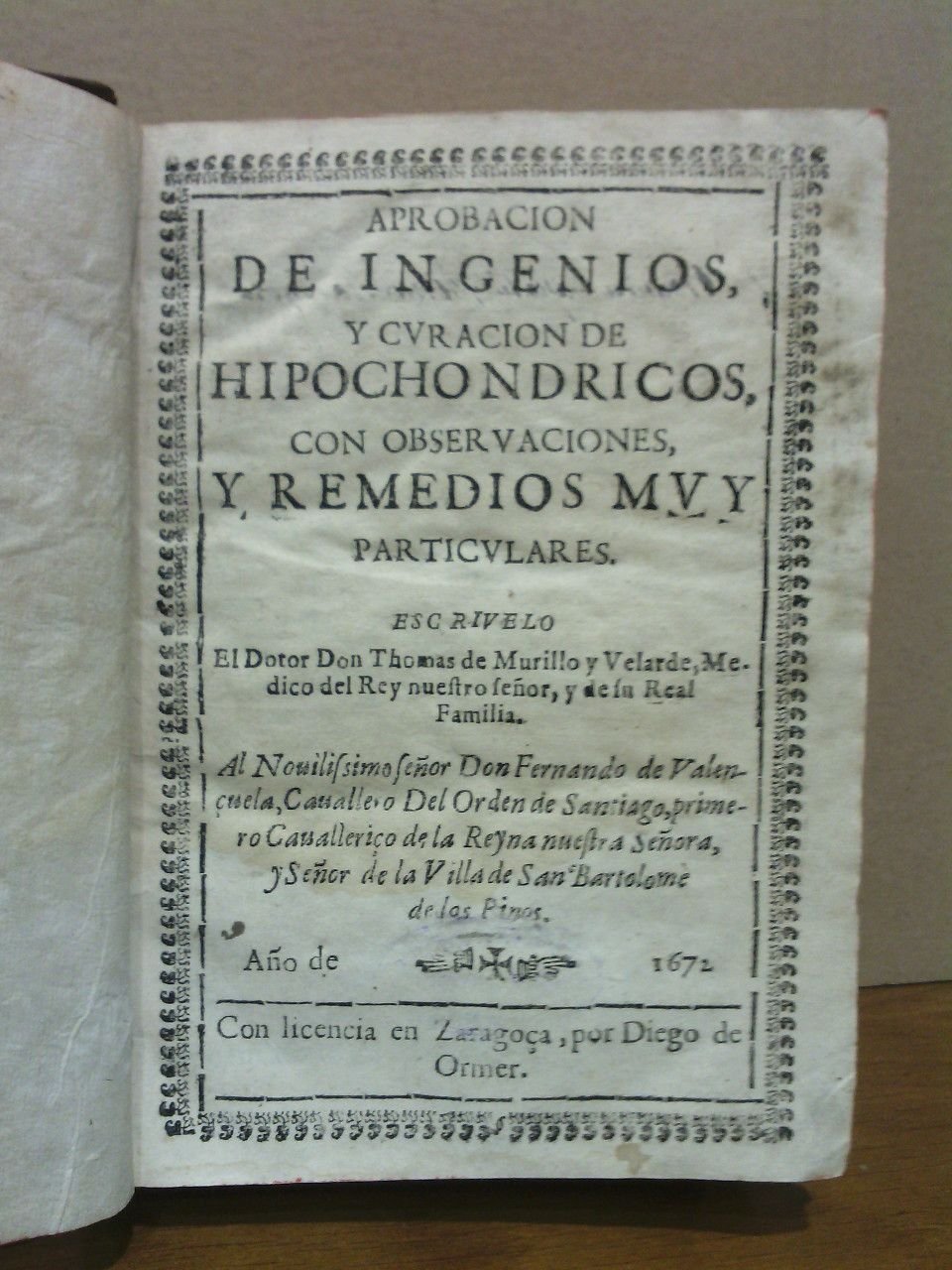 Aprobación de ingenios, y curación de hipochondricos, con observaciones, y remedios muy particulares / Escrivelo el Dr. Don Thomás de Murillo y Velarde, Medico del Rey nuestro señor, y de su Real Familia. Al Nouilissimo Señor Don Fernando de Valençuela, Cauallero del Orden de Santiago, primero Caualleriço de la Reyna nuestra Señora, y Señor de la Villa de San Bartolomè de los Pinos. [Siguidamente van juntas dos obras más del autor]