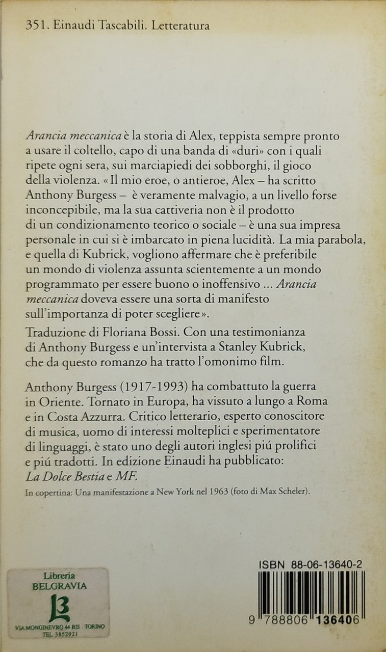 anthony burgess arancia meccanica einaudi tascabili. , einaudi tascabili 1996 italiano, °°