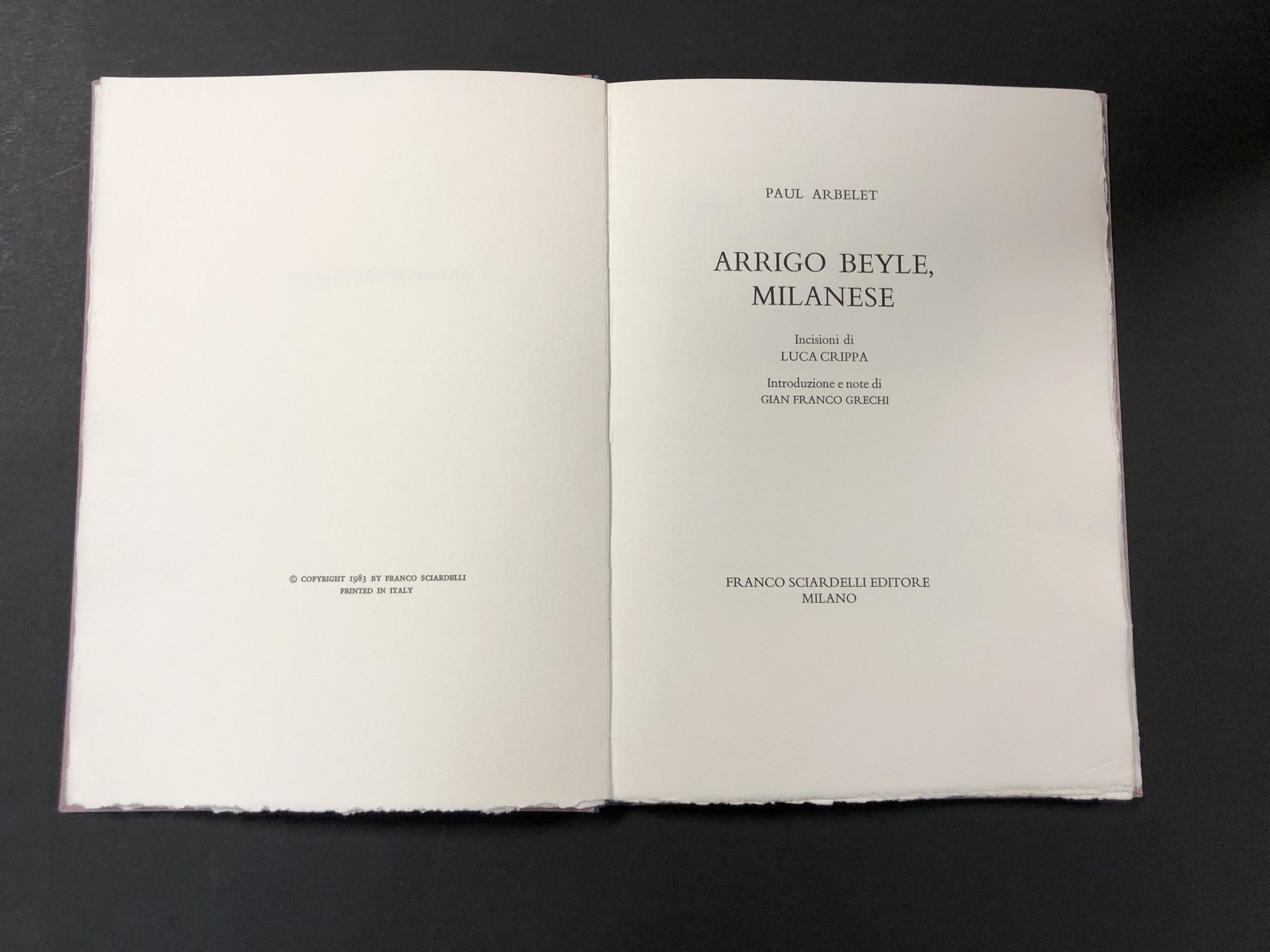 Arbelet Paul. Arrigo Beyle, milanese. Incisioni di Luca Crippa. Introduzione di Gian Franco Grechi. Franco Sciardelli editore, Milano, 1983.
