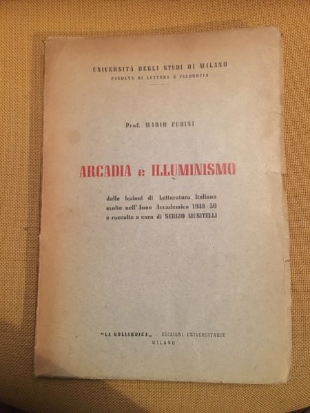 Arcadia e illuminismo dalle lezioni di letteratura svolte nell'anno accademico 1949-50 e raccolte a cura di Sergio Musitelli.
