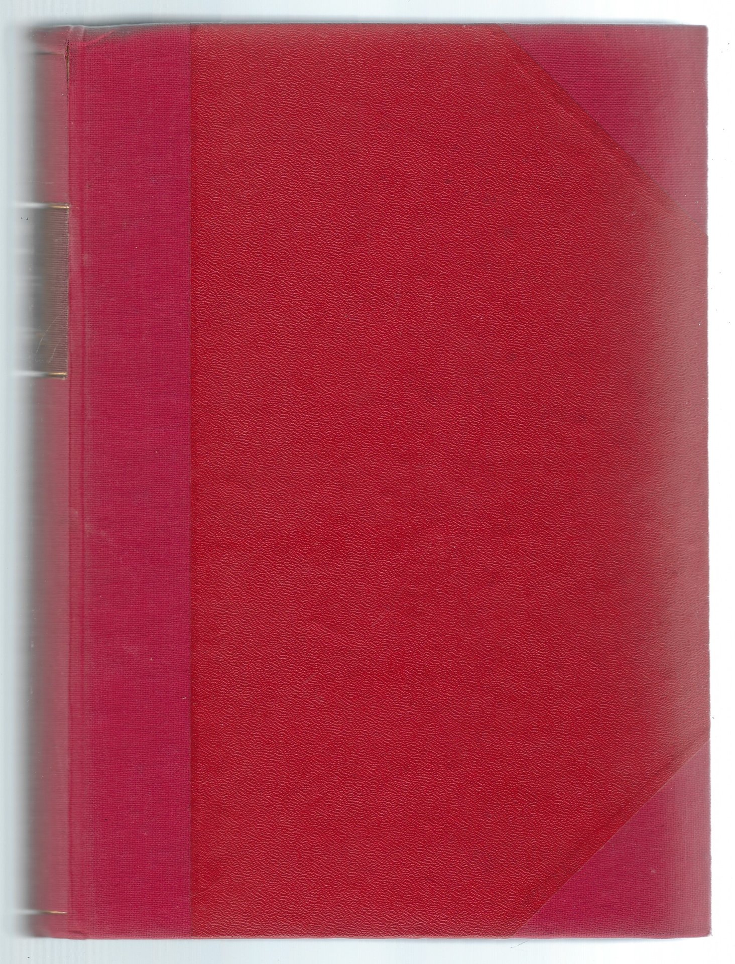 Rilegatura artigianale in mezza tela rossa con titoli in oro su tassello al dorso.
