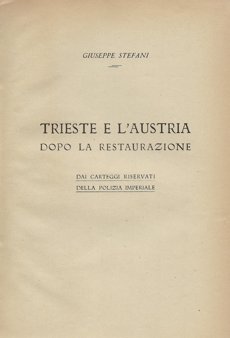 Archeografo Triestino: Trieste e l'Austria dopo la Restaurazione. Dai carteggi riservati della Polizia imperiale.