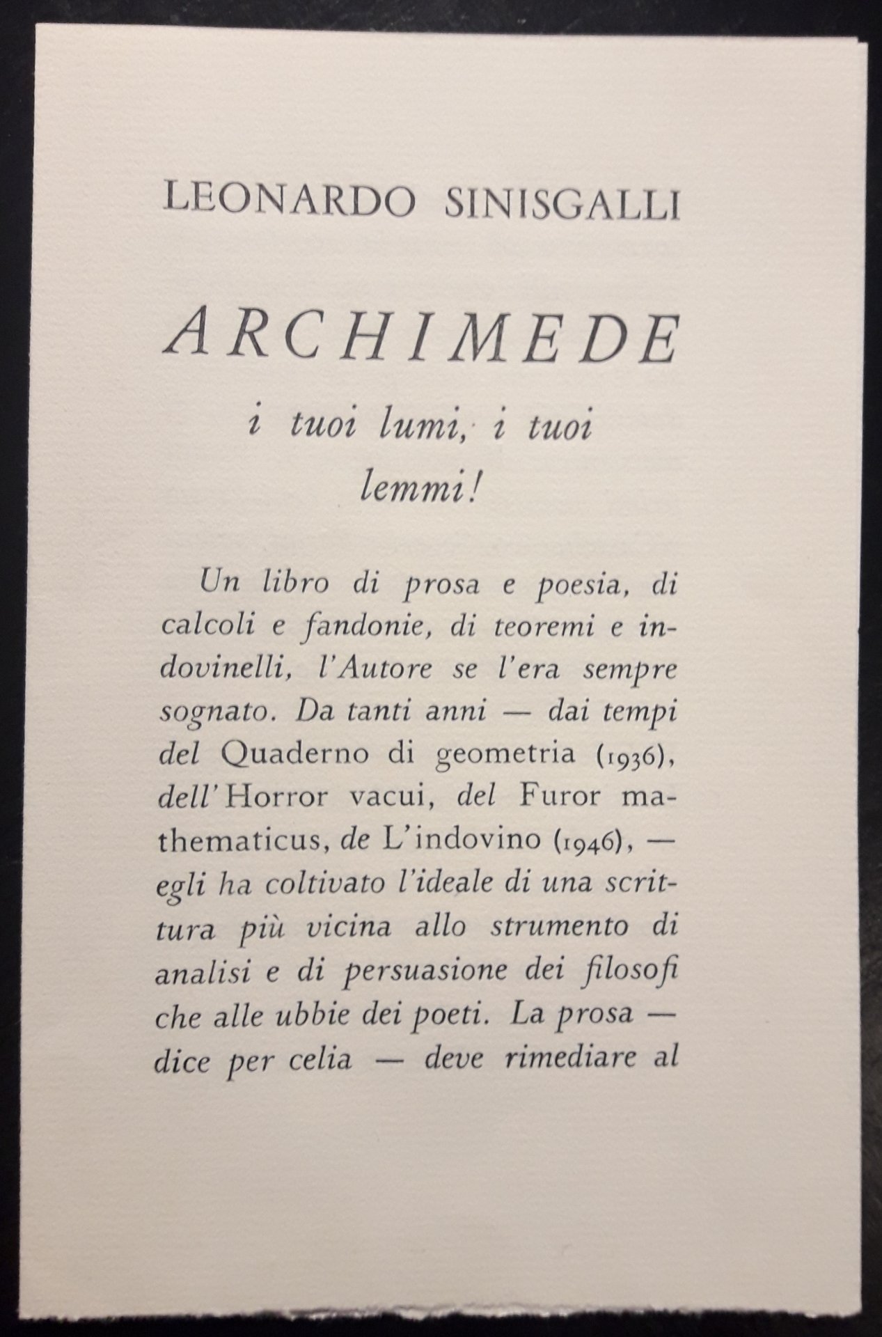 Archimede i tuoi lumi, i tuoi lemmi!
