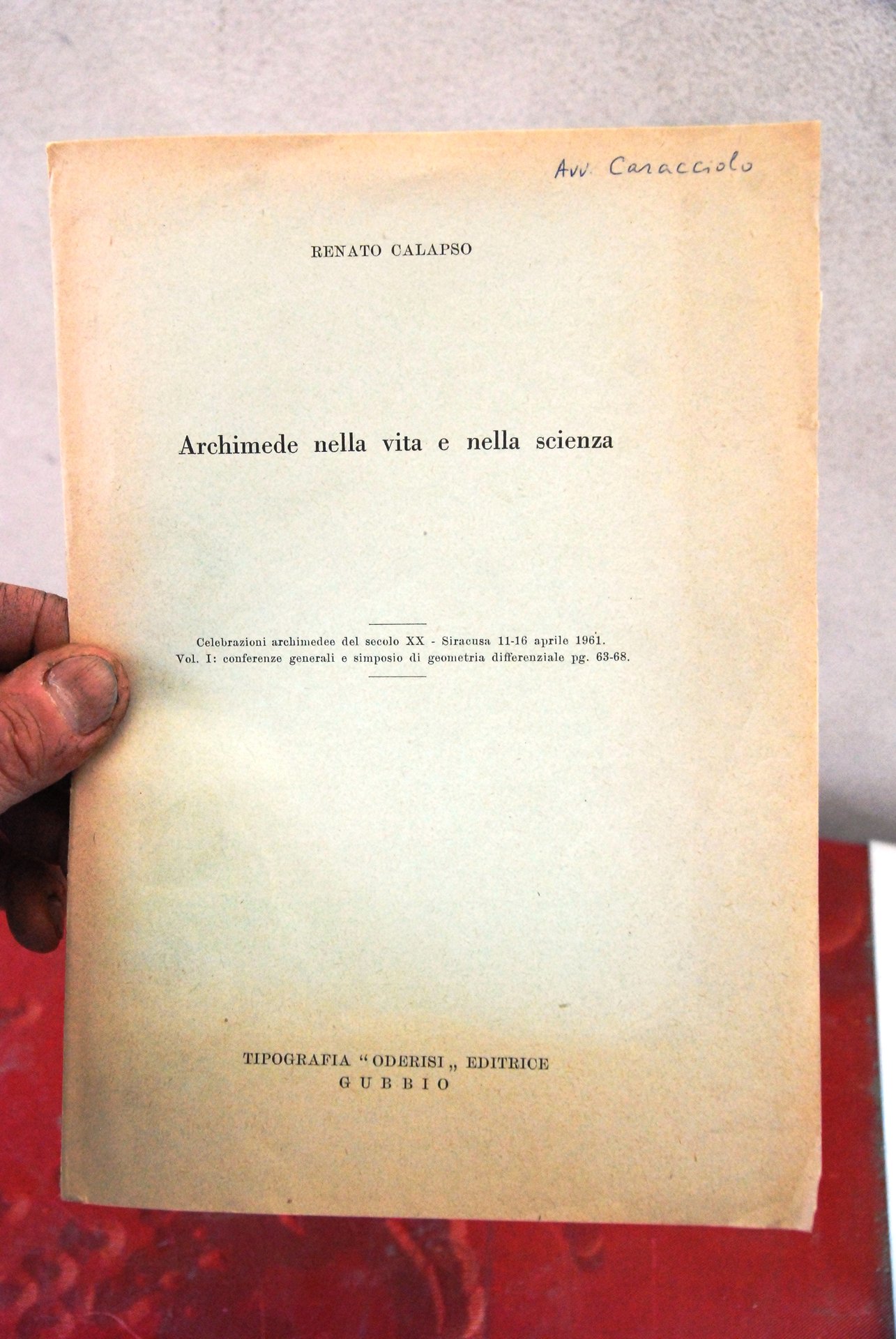 renato CALAPSO ARCHIMEDE NELLA VITA E NELLA SCIENZA. celebrazioni archimedeee 1961 .