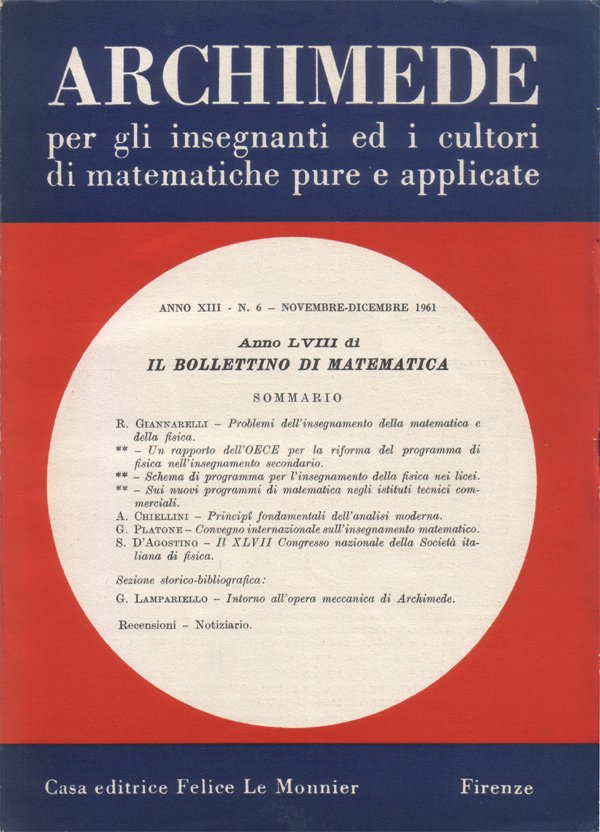 Archimede. Rivista per gli insegnanti e i cultori di matematiche pure e applicate. Anno XIII - N. 6 - Novembre-Dicembre 1961. Anno LVIII di Il Bollettino di matematica