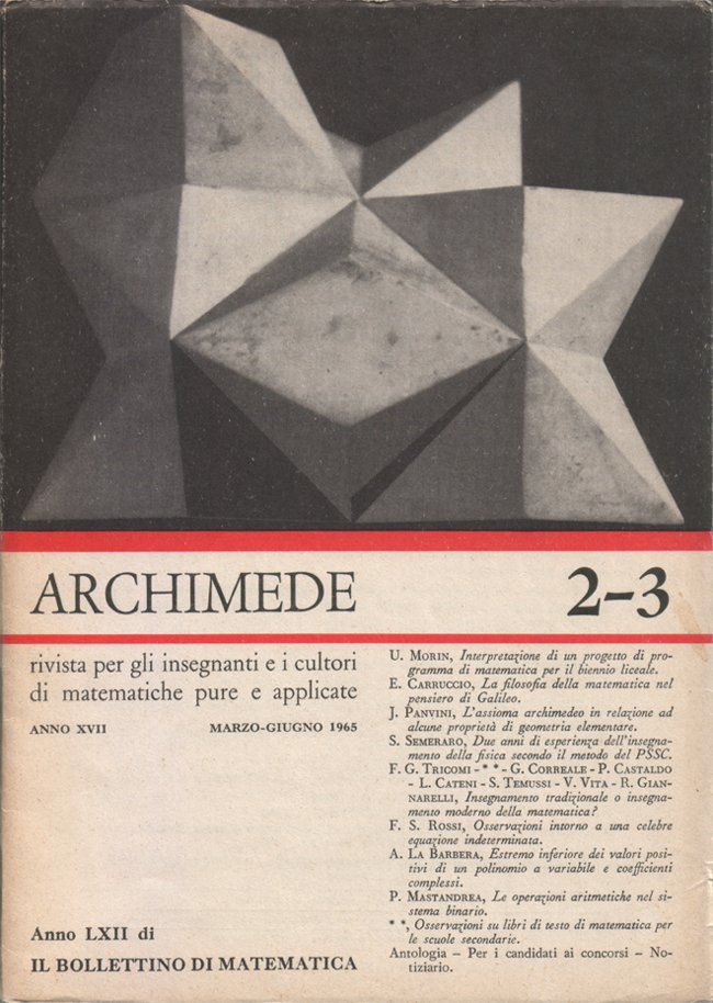 Archimede. Rivista per gli insegnanti e i cultori di matematiche pure e applicate. Anno XVII - N. 2-3 - Marzo-Giugno 1965. Anno LXII di Il Bollettino di matematica