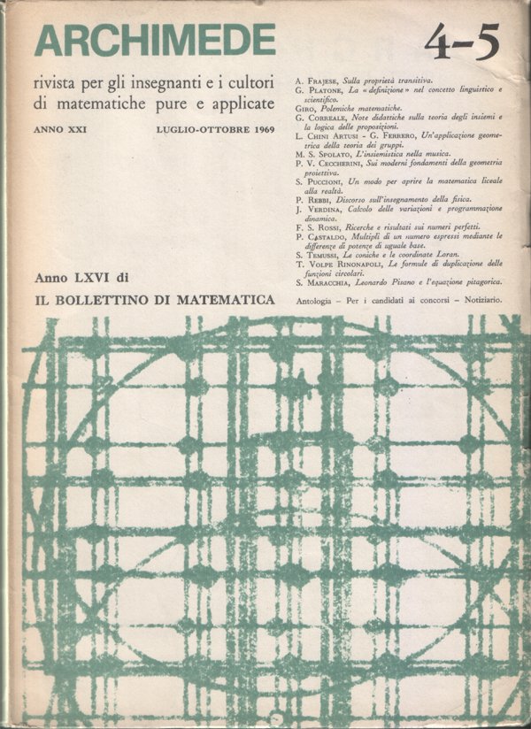 Archimede. Rivista per gli insegnanti e i cultori di matematiche pure e applicate. Anno XXI - N. 4-5 - Luglio-Ottobre 1969. Anno LXVI di Il Bollettino di matematica