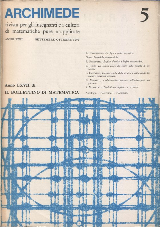 Archimede. Rivista per gli insegnanti e i cultori di matematiche pure e applicate. Anno XXII - N. 5 - Settembre-Ottobre 1970. Anno LXVII di Il Bollettino di matematica