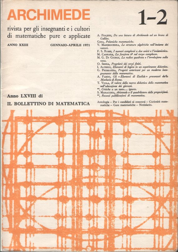 Archimede. Rivista per gli insegnanti e i cultori di matematiche pure e applicate. Anno XXIII - N. 1-2 - Gennaio-Aprile 1971. Anno LXVIII di Il Bollettino di matematica