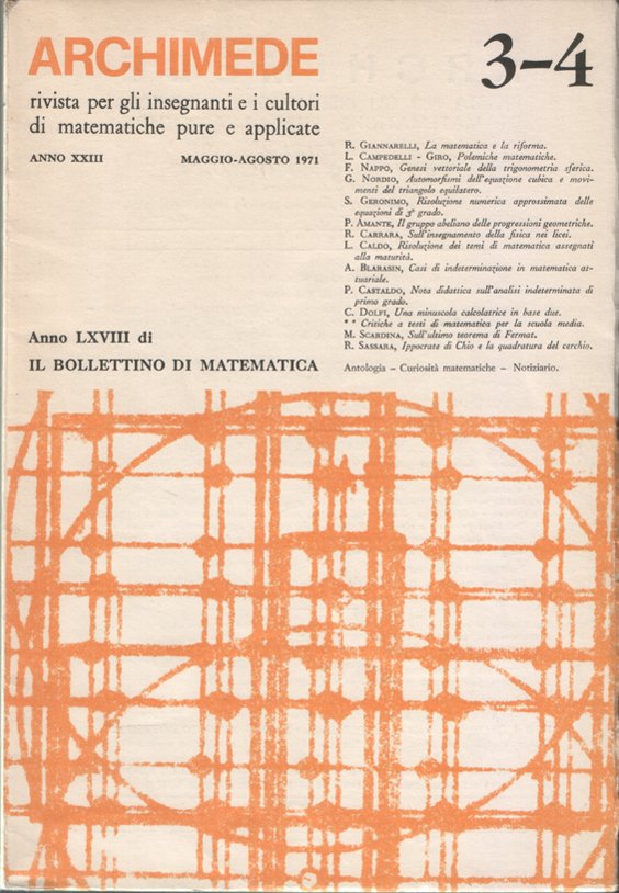 Archimede. Rivista per gli insegnanti e i cultori di matematiche pure e applicate. Anno XXIII - N. 3-4 - Maggio-Agosto 1971. Anno LXVIII di Il Bollettino di matematica
