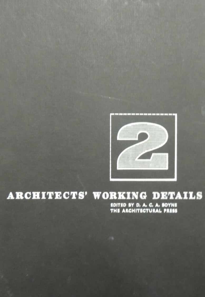 Architects’ Working Details. Volume 2, edited by (a cura di) D. A. C. A. Boyne, The Architectural Press, London 1956, terza ed., pp. 160, ill. b.n., cm 30, legatura ed. ad anelli e copertina cart. con titoli al dorso e al piatto. Pubblicazione in lingua inglese. Lievi tracce d’uso, minime fioriture, leggera brunitura della carta, per il resto ben conservato.